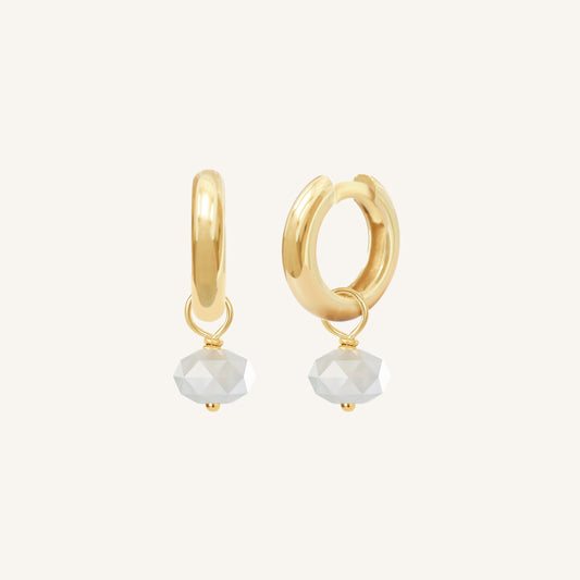 Opulent White Moonstone Hoop Charm - Stone of Hope (Set of 2)