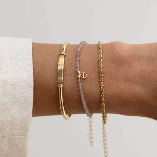 Rose Gold Etch Alpha Charm Pearl Bracelet