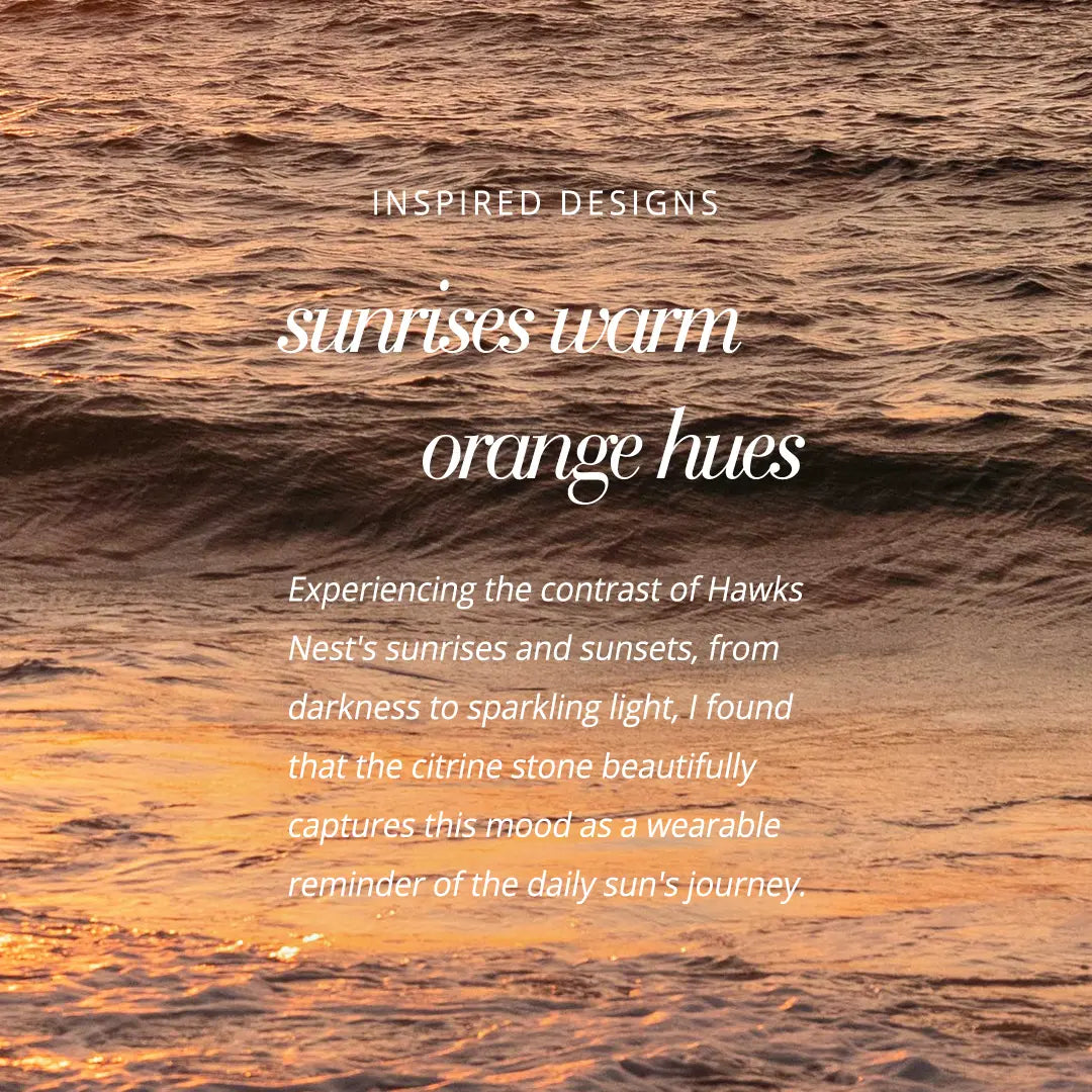 The Abundance Bracelet features a warm, vibrant amber stone that resembles the glowing sunset skies as it illuminates the plains of desert sand. The You Beauty Collection is inspired by the beauty of the Australian landscape and the beauty found in human nature.
