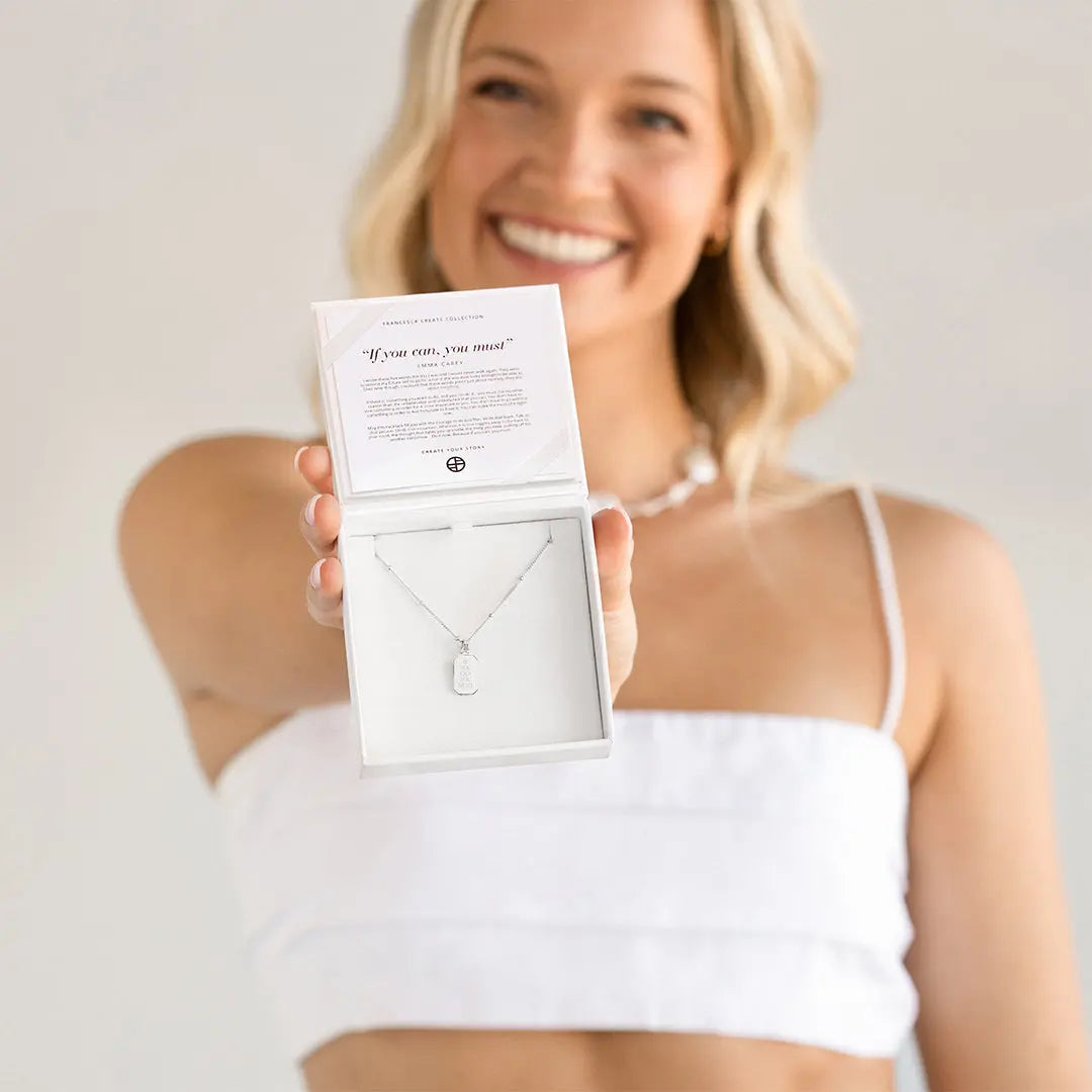 Known as “the girl who fell from the sky” after surviving a spinal cord injury when her parachute did not open during a skydiving accident at age 20. We worked with Em to create a piece of jewellery featuring a quote, part of her story, “if you can, you must.” Designed as motivation to live each day to the fullest.
