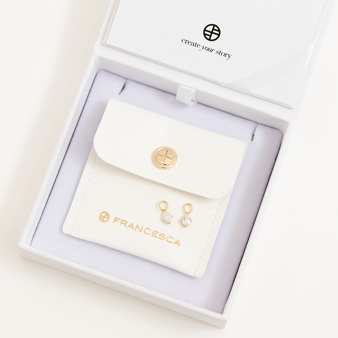 The Axial Hoop Charms feature petite teardrop cubic zirconia, symbolising inspiration and strength—add them to your favourite Franc Create Hoops for your daily empowerment reminder.