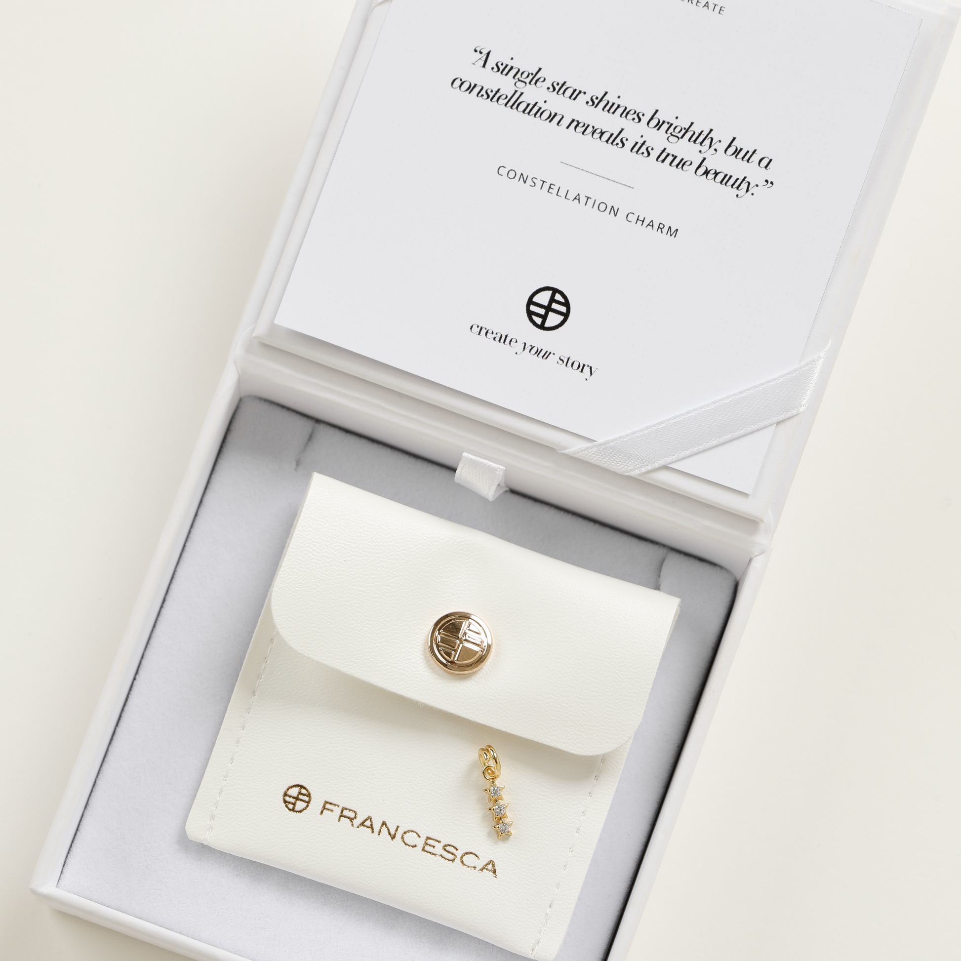 Sprinkle some celestial charm onto your Franc Create necklace or bracelet with the Constellation Charm. Representing those who've always had your back, just like shining stars!