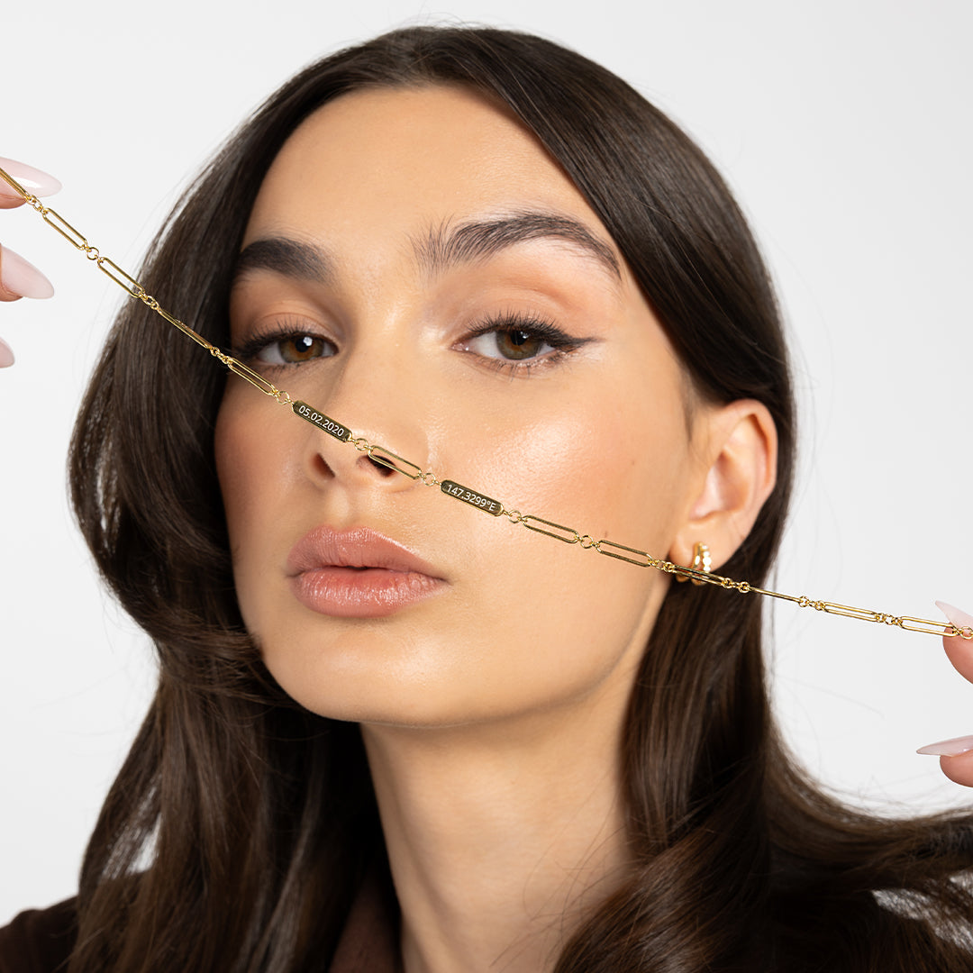 This is a design that hides an extra layer of meaning. The classic link chain is personalised by two sleek panels that can be etched on both sides. It could be a name, date, or word that holds special significance to you. Whatever you hold dear, celebrate your story in a way that’s close to your heart.