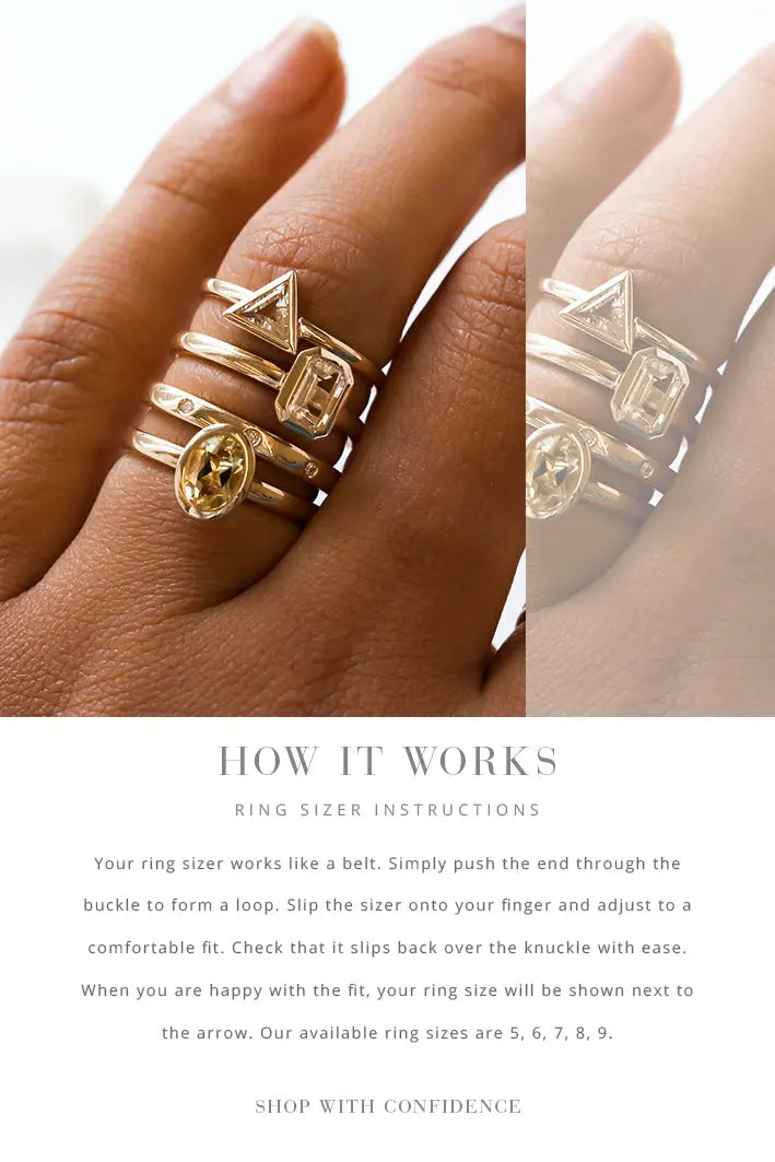 The ring size will be determined by the finger on which you want to wear it. Check the specific tips and size recommendations for the ring you're interested in below.