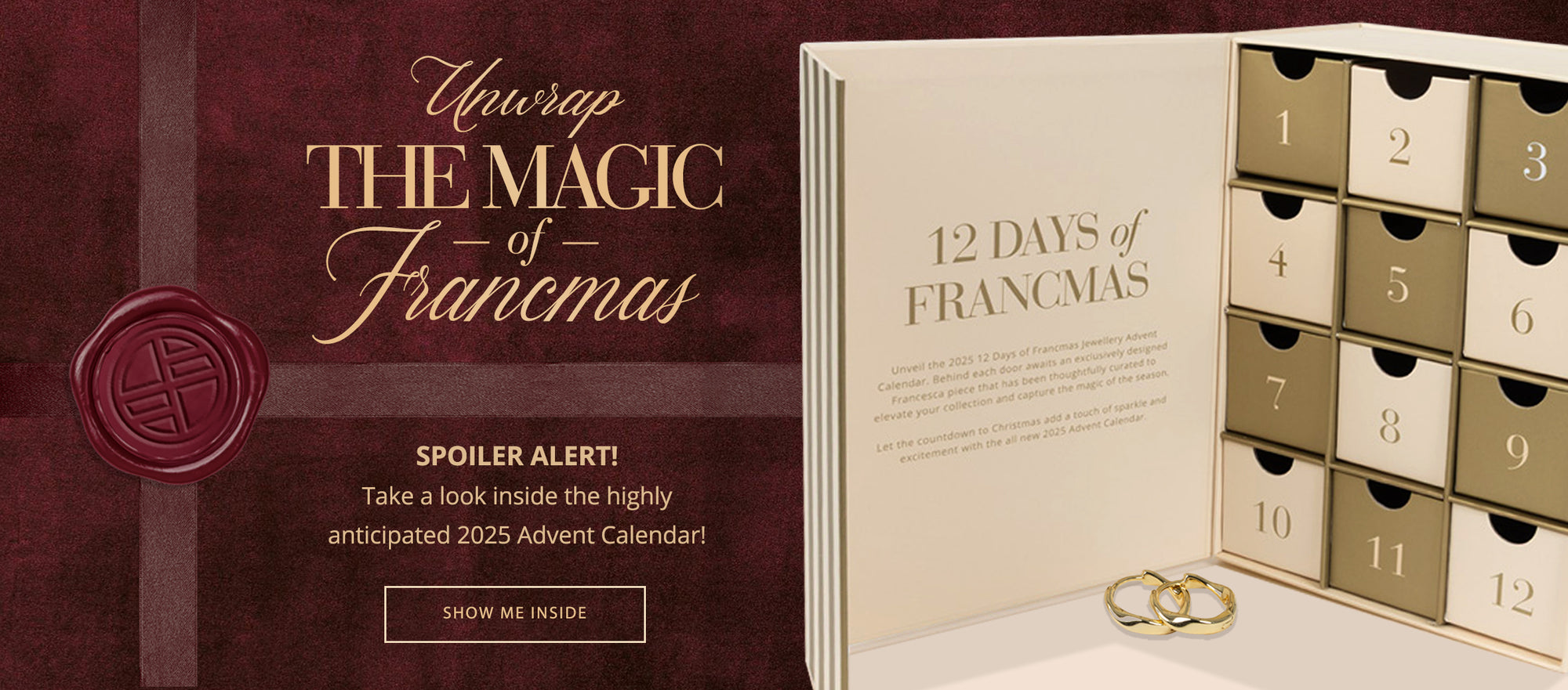 Our 12 piece Jewellery Advent Calendar will bring the excitement of beginning each day with an exclusive jewellery piece as we count down to the most fabulous Francmas ever. These pieces have never been released before!