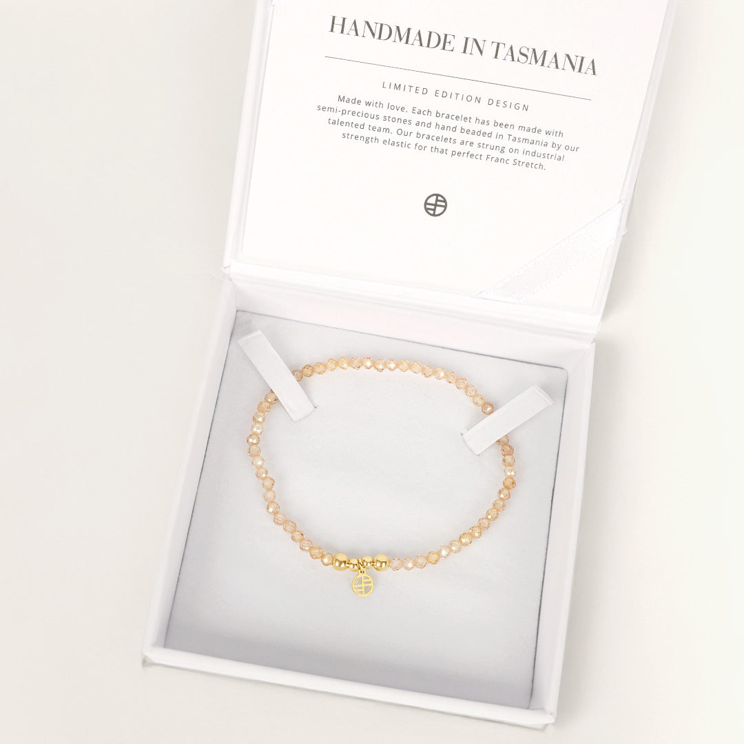 Add a little glam to your day with our new Aurora Bracelet! Francesca is known for our beaded bracelets handmade in Tasmania on industrial strength elastic. These bracelets are the ideal purchase to instantly add texture to your stack, or the perfect gift for a loved one.