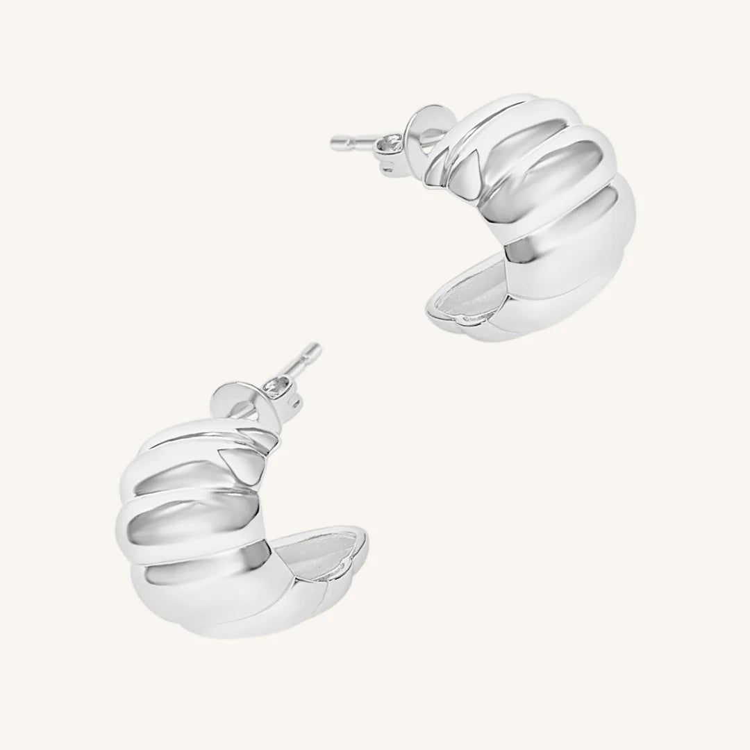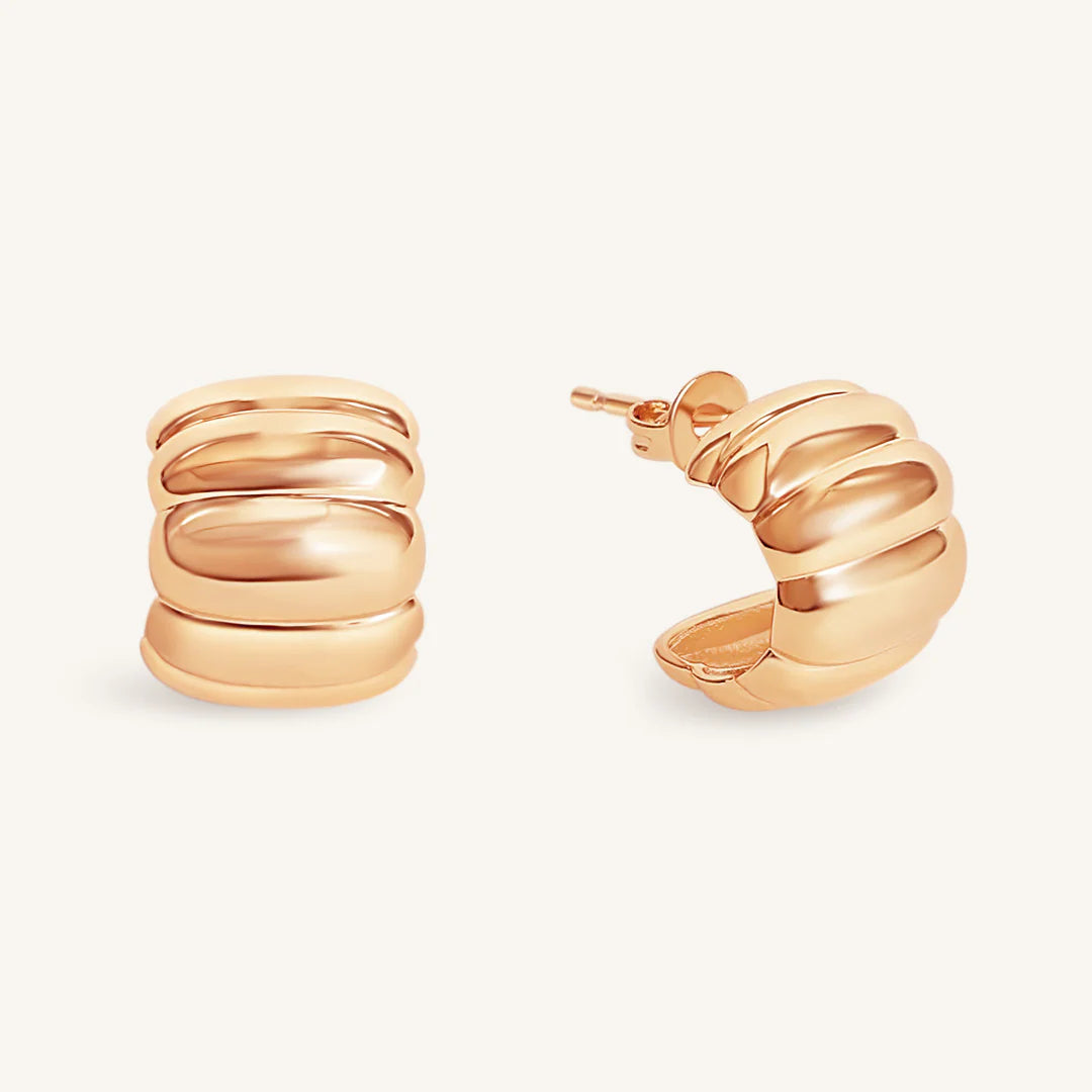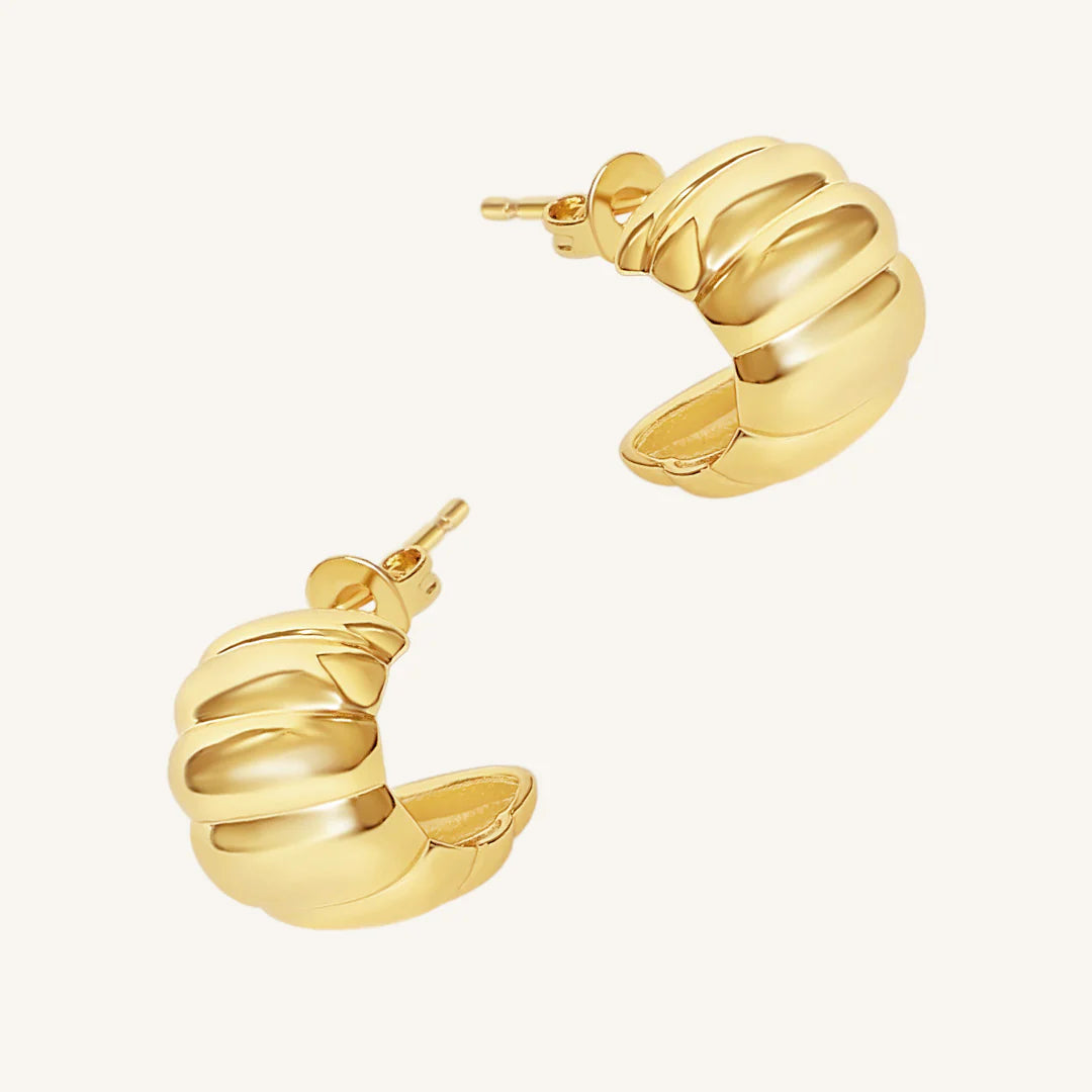 The Polar Huggies are the perfect earrings to elevate your style this winter. Worn alone or stacked, this curved design adds a bold touch to any outfit!
