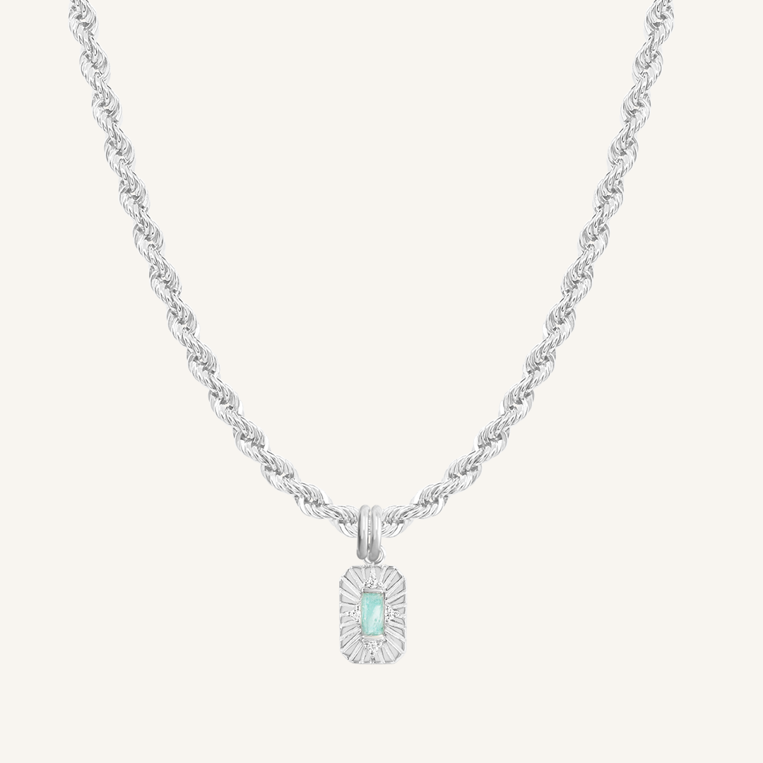 The Providence Charm Necklace, featuring a genuine amazonite stone with your choice of best-selling chain necklace, symbolises fate and destiny—perfect for embracing life's flow and trusting the journey.